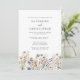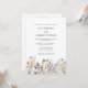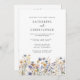 Cette invitation de mariage tout-en-un Budget Dusty Blue Wildflowers présente de délicates fleurs sauvages aquarellées dans des nuances de bleu poussiéreux, jaune et violet sur fond blanc, complétées par une typographie contemporaine. Elle est entièrement personnalisable avec les noms des mariés et les détails du mariage, ainsi que les informations sur la réception, l'hôtel, la RSVP, le site web du mariage et d'autres informations au verso. Le design et la formulation formels ajouteront une touche d'élégance à votre célébration de mariage.