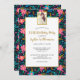 Célébrez une personne spéciale avec cette belle invitation de fête avec une photo et les détails de votre événement entouré d'une fausse bordure en or imprimé - le tout face à un arrière - plan fleur sauvage rose, bleu, vert, noir. Parfait pour un anniversaire, une douche bébé ou nuptiale, la retraite, anniversaire et bien plus encore. Qualité merveilleuse et si facile à personnaliser.