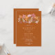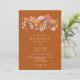 Annoncez votre mariage imminent avec nos invitations inspirées du style bohème, mettant en vedette de jolies fleurs sauvages charmantes dans des tons terreux tendance comme l'orange, le vert sauge, le rouge foncé et le rose poussiéreux sur une terre cuite foncée. Le script moderne au pinceau ajoute une touche d'élégance à ces invitations uniques qui sont parfaites pour toute célébration sur le thème de la prairie ou de la forêt bohème, idéales pour une cérémonie de mariage en plein air ou dans un jardin. Ajoutez vos initiales dans un cadre fleuri.
