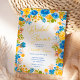 Elégant printemps moderne pays été bleu et jaune fleurs peintes à la main illustration aquarelle avec jolie fleur sauvage et script de brosse douche nuptiale avec une typographie calligraphie moderne, parfait pour les thèmes méditerranéens, italiens, européens