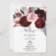 Invitation Fleurs sombres rouges et roses, feuillage blanc po