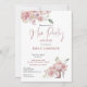 Une floraison de fleurs roses décorent le coin supérieur gauche et un motif de coordination en bas à droite avec une élégante chaussure en stiletto rose et poussiéreuse partiellement cachée par le bouquet, et le thème floral se poursuit également sur le dos. L'en-tête principal Hen Party est dans une typographie de script rose rose et le reste du texte que vous pouvez facilement personnaliser, ainsi que vos détails d'itinéraire sur l'inverse.