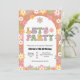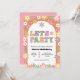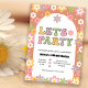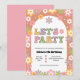 Une audacieuse invitation de fête d'anniversaire hippie à la puissance de fleur qui est parfaite pour toute jeune fille. Le design super présente des marguerites multicolores qui bordent la boîte voûtée blanche. Les lettres de style du début des années 1970 ajoutent une ambiance colorée.