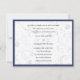 Des tiges frisées et des fleurs de nuances bleues constituent l'élément graphique principal de cette invitation unique. Un cadre bleu foncé est répété sur le devant et le dos avec l'imagerie florale utilisée en filigrane derrière le texte. Utiliser pour les mariages, les fêtes de fiançailles, les anniversaires ou les événements d'entreprise. Disponible en couleurs alternatives avec affranchissement et faveurs assortis.