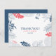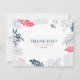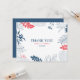 Des fleurs tropicales et des feuilles encadrent un arrière - plan blanc bleu foncé et rouge-corail. Merci texte personnalisable.