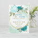 Invitation fleurs turquoise vert feuille mariage