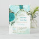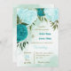 Belle faire-part de mariage avec fleurs turquoise et bleu clair et feuilles verts Les détails de la parties scintillant d'or sont simulés. Il convient aussi bien aux invitations mariages qu'aux fiançailles. POUR PLUS DE PRODUITS CORRESPONDANTS cliquez sur la collection ci-dessus ou contactez-moi