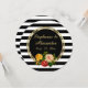 Invitation Fleurs Vintage Noir et Rayure Blanche Personnalisé
