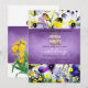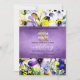 Une invitation de mariage élégante faite de fleurs violettes élégantes jaunes joyeuses, avec une écriture exquise,