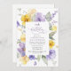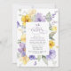 Invitations amis et famille dans le style et donner le ton pour votre journée spéciale avec cette charmante invitation d'anniversaire. Le design présente des fleurs d'aquarelle violette et jaune et de la verdure sur l'arrière - plan blanc.