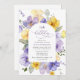 Invitations amis et famille dans le style et donner le ton pour votre journée spéciale avec cette charmante invitation d'anniversaire. Le design présente des fleurs d'aquarelle violette et jaune et de la verdure sur l'arrière - plan blanc.