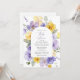 Invitations amis et famille dans le style et donner le ton pour votre journée spéciale avec cette charmante invitation baby shower. Le design présente des fleurs d'aquarelle violette et jaune et de la verdure sur l'arrière - plan blanc.