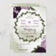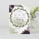 Romantique belle aubergine foncée violet et fleurs violettes clair avec faire-part de mariage botanique feuille vert
