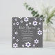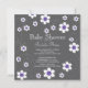 L'élégante invitation au baby shower carré floral rien que pour une petite fille avec des fleurs de marguerite blanches et violettes se distinguent sur un arrière - plan gris branché avec un dos assorti. Notre baby shower floral moderne et populaire est parfait pour prendre une douche bébé. Visitez notre boutique pour obtenir les cartes de remerciement, les autocollants et les timbres-poste correspondants.