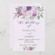 Arrière - plan violet, lavande aquarellé. Décoré de fleurs violettes et violettes aquarelles et verdure. Personnalisez et ajoutez vos noms et les détails de votre fête.