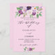 Un fond rose. Décoré de fleurs aquarelles violettes et de verdure. Personnalisez et ajoutez vos noms et détails de fête.