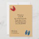 Le motif fantaisiste sur cette invitation présente des tongs dans les tons primaires de rouge, bleu et jaune alignés contre des rayures de couleur sable lâche avec des accents noirs d'un côté et du texte noir contre un arrière - plan de couleur sable de l'arrière qui est parfait pour customiser pour des soirées d'été ou de plage, ou pour le 4 juillet.