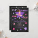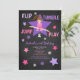 FLIP, TUMBLE, JUMP & PLAY ...Venez fêter avec cette invitation branchée d'anniversaire de gymnastique. Il y a une étoile violette avec une adorable gymnaste au milieu faisant une scission. Personnalisez avec vos informations de fête.
