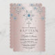 Design élégant avec des cristaux argentés, des perles et des diamants bleus sur un fond dégradé rose avec des flocons de neige argentés. Un design de carte parfait et élégant pour ceux qui cherchent à assortir leur thème de baptême à l'éclat des fêtes d'hiver. Personnalisez-le avec vos informations. Pour les articles assortis, veuillez visiter ma nouvelle collection Baptême/Célébration de baptême.
