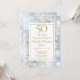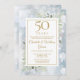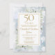 Avec des feuilles d'eucalyptus aquarelle de verdure botanique sur un fond de flocons de neige hivernaux. Cette invitation d'anniversaire dorée chic peut être personnalisée avec vos détails de célébration d'anniversaire de 50 ans spéciaux en typographie dorée moderne. Conçue par Thisisnotme©