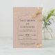 Carte d'invitation de cérémonie mariage moderne pour votre occasion spéciale! Avec des fleurs dorées en or avec de petits feuilles décorent la bordure de votre carte mariage et des cadres géométriques polygonaux d'or vos détails de célébration mariages dans un arrière - plan de couleur beige rose riche. Customisez vos coordonnées du mariage, votre date, votre lieu et plus encore au premier plan. Conçu pour se coordonner avec notre Gold Blooming | Collection d'invitation mariage moderne et événement.