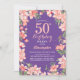 Floral 50e Anniversaire Fleurs roses Violet violet Invitation Anniversaire. Pour plus de personnalisation, cliquez sur le bouton "Customiser" et utilisez notre outil de conception pour modifier ce modèle.