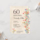 Floral 60e anniversaire fête élégante fleurs sauvages 60 Invitation. Célébrez une étape spéciale avec cette élégante invitation de 60e anniversaire, conçue pour une femme merveilleuse. Doté d'un audacieux "60" en haut et d'un design floral délicat dans des teintes douces d'aquarelle, cette invitation allie élégance et charme. Parfait pour rassembler des êtres chers pour honorer une occasion vraiment mémorable. Ajoutez tous les détails de votre événement pour créer un souvenir unique et élégant. Bon appétit !