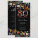 Invitation Floral 80th Birthday Party Program Menu Noir