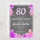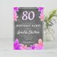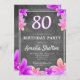 Floral violet rose Bellflowers Chalkboard 80e anniversaire de fête Invitation. Cette invitation aux fleurs d'été de 80e anniversaire est parfaite pour une fête d'anniversaire de milieu d'été. Le modèle d'invitation floral présente des fleurs de couleur rose et violet sur une texture de tableau noir gris foncé. Personnalisez l'invitation avec vos données et modifiez ou effacez tout texte sur la carte.