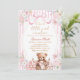 Invitation Floral Blush Stripe Pink Bow Bear Baby Shower