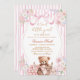 Floral Blush Stripe Pink Bow Bear Baby Shower Invitation