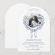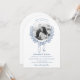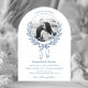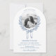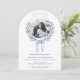 Cette élégante faire-part de mariage voûtée présente un cadre floral circulaire dessiné à la main, délicatement ouvragé avec des détails complexes. Un arc de charme orne le centre inférieur du cadre, ajoutant une touche de romantisme. La photo du couple est joliment placée au coeur du design, créant une touche personnelle et intime. L'invitation est élégamment finie avec un script bleu sophistiqué, dégageant un charme et une grâce intemporels. Parfait pour une fête raffinée et romantique. Contactez-nous pour obtenir de l'aide sur le design via Zazzle Conversation. Nous serons sûrs de répondre dans les 12 heures.