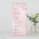 Dusty pink cherry blossoms on a shimmering blush pink background. With custom bride and groom names, the wedding date and a custom menu text. On the backside are the initials to change.