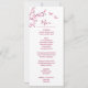 Pink cherry blossoms and two cute butterflies on a white background. With custom bride and groom names, the wedding date and a custom menu text. On the backside are the initials to change.