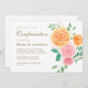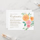 Ce simple design de confirmation florale présente un bouquet floral coloré de pêche et d'aquarelle rose avec verdure et une croix dorée au dos de la carte. Personnalisez avec votre nom dans un script élégant, et incluez des détails d'occasion importants.
