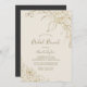 Cette invitation au brunch doré à la crème fleurie et à l'or est parfaite pour une élégante douche de mariage. Le design boho moderne présente un arrangement fantaisiste de faux feuilles d'or dessiné à la main, de feuilles et de botaniques sur un arrière - plan crème. Personnalisez le dos de la carte avec le nom de l'invité d'honneur et l'événement. Remarque : Ce design ne comporte pas de véritable feuille d'or. C'est un graphisme de haute qualité fait pour ressembler à du papier doré.