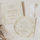 Cette crème dorée fleurie et dorée en un seul faire-part de mariage est parfaite pour un mariage élégant. Le design boho moderne présente un arrangement fantaisiste de faux feuilles d'or dessiné à la main, de feuilles et de botaniques sur un arrière - plan crème. Enregistrez du papier en incluant les détails au verso du faire-part de mariage plutôt que sur une carte de boîtier séparée. Inclure également les informations RSVP si votre invité répondra par voie électronique (facultatif). Remarque : Ce design ne comporte pas de véritable feuille d'or. C'est un graphisme de haute qualité fait pour ressembler à du papier doré.
