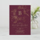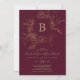 Invitation Floral doré | Mariage de monogramme Bourgogne et o