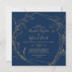 Invitation Floral doré | Mariage géométrique bleu et or Marin