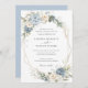 Floral Dusty Blue White Geometric Gold Wedding Invitation Card, Elegant Greenery Wedding Invitation