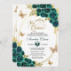 Invitation Floral Emerald Gold Tiara Butterfly Quinceañera