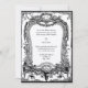 Invitations de mariage franco-baroque Rococo très ornementées et élégantes, avec guirlandes à fleurs, bordure de fruits et d'oiseaux. Vous pouvez facilement modifier le texte et modifier la couleur arrière - plan dans ce modèle de conception.