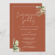 Cette élégante invitation à la fête de fiançailles florales en terre cuite peut être personnalisée avec vos informations en typographie chic avec vos initiales monogrammes au verso. Conçu par Thisisnotme©