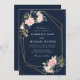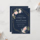 Un design floral bleu marine et rougissant avec un cadre géométrique or avec du texte au milieu. Le bleu rose et les fleurs bleu marine sont parfaits pour toutes les saisons de l'année. Un magnifique thème rose et or mariage. Vous pouvez modifier le libellé, la taille du texte, la couleur et la police de ce modèle faire-part de mariage. L'arrière - plan de la Marine peut aussi être changé.