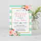 Invitation Floral Mint Green Stripes Gold Bachelorette