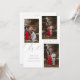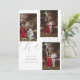 Une élégante invitation de mariage verticale et moderne « save the date » avec des modèles pour trois photos, présentant une peinture à l’aquarelle de deux fleurs sauvages de montagne, des coquelicots rouges. Une charmante invitation florale de mariage en montagne pour un mariage d’été et un couple qui aime les montagnes.
