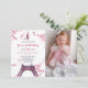 Floral Paris Tour Eiffel 1er Anniversaire Fête Photo Invitation