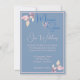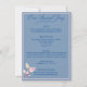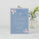 Voici une faire-part de mariage, en bleu pays avec des accents rose pâle. Le revers comprend un motif "Notre journée spéciale", avec des couleurs d'encre complémentaires.