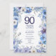 Invitation Floral pourpre et bleu 90e anniversaire, jalon