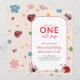Invitation Floral Red Pink One Cute Bug Ladybug 1st Birthday